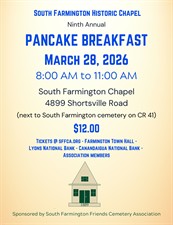 9th Annual Pancake Breakfast held at the historic 1895 South Farmington Chapel.